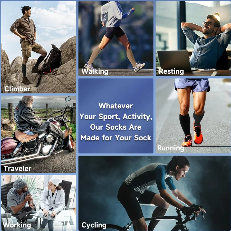 Improve circulation and reduce leg fatigue with our 20–30mmHg Knee-High Compression Socks, designed for both men and women. These medical-grade compression socks provide firm, graduated support to help relieve swelling, varicose veins, and muscle soreness. Ideal for nurses, runners, travelers, athletes, and anyone who stands or sits for long hours, they promote better blood flow and faster recovery.